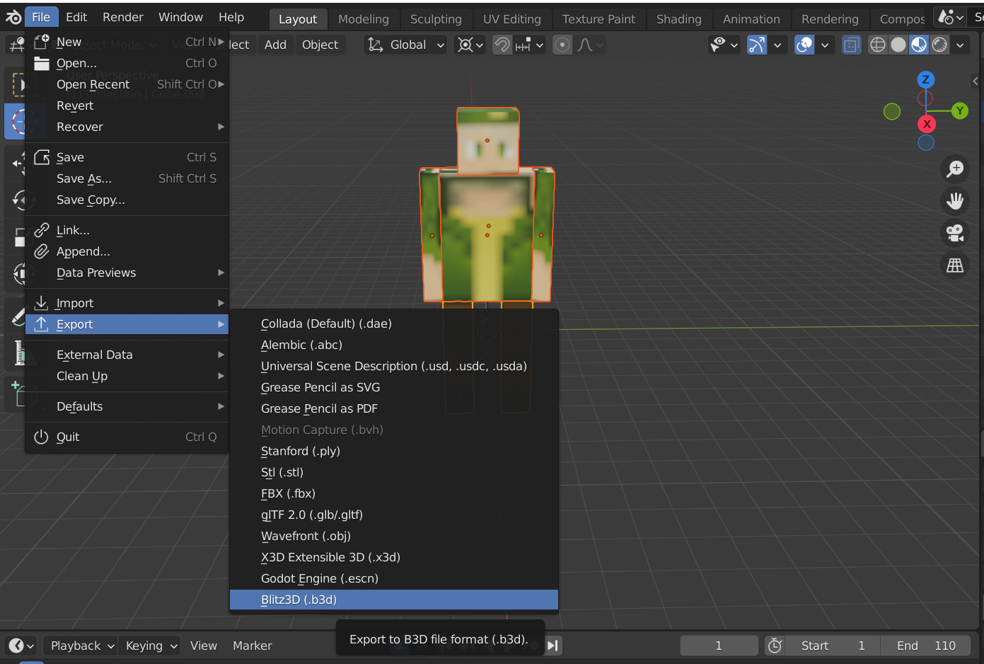 Dentro de la sub carpeta models metemos nuestro modelo en formato b3d(Bliz) y en textures pondremos nuestra textura en formato png. Es importante que nuestro modelo tenga creada una animación para las acciones que necesitemos(andar,atacar,correr,etc..) No os preocupes si no tenéis instalado el plugin de blender para b3d, o no tenéis modelos 3d,  más abajo he dejado un repositorio en gitlab de todo lo que necesitamos.